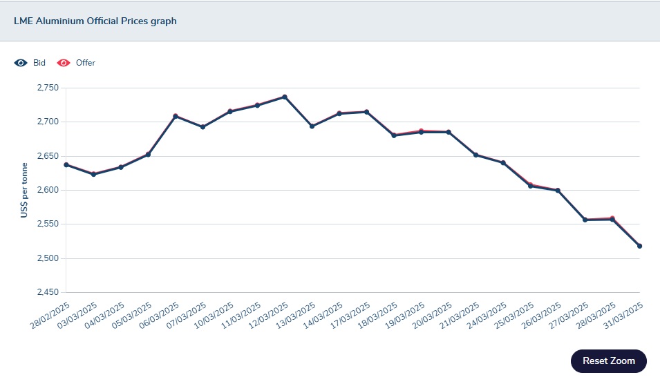 2025 年度各月份 LME 價格記錄