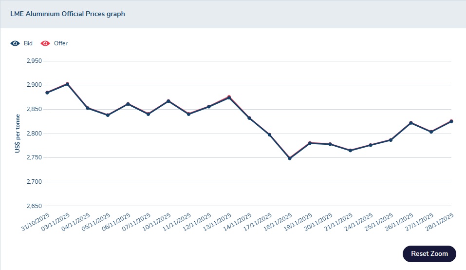 2025 年度各月份 LME 價格記錄