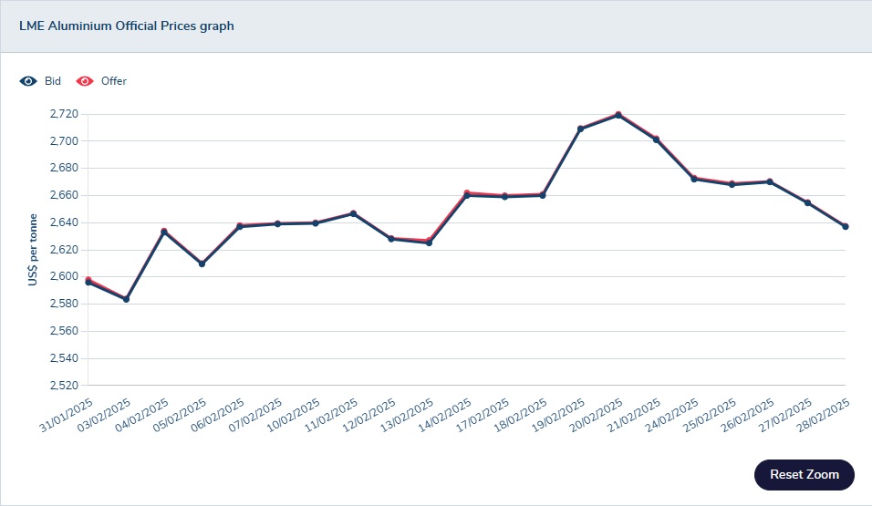 2025 年度各月份 LME 價格記錄